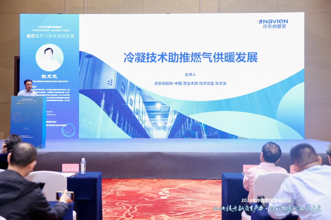 庆东纳碧安中国营业本部技术总监张文龙应邀在论坛上发表了题为“冷凝技术助推燃气供暖发展”的主题演讲。他分享了庆东纳碧安在商用供暖领域的先进技术和成功案例,重点介绍了公司如何通过冷凝技术和智能控制,为商用建筑提供高效、环保的供暖解决方案。随着市场对节能和环保要求的不断提升,商用供暖系统正朝着小型化、高效化和智能化的方向发展。