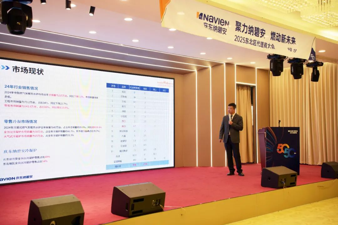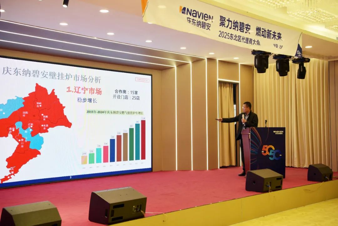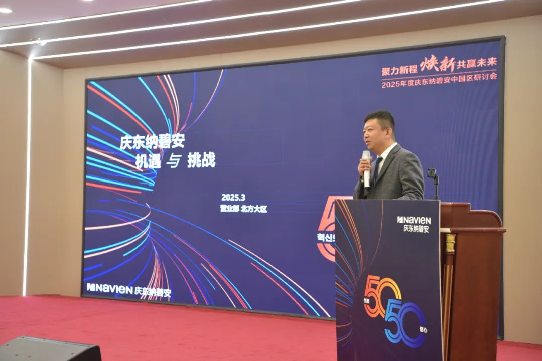 北方大区李朋总监以《庆东纳碧安的机遇与挑战》为题,深入剖析了东北市场所面临的变局。他指出,区域市场正经历“清洁能源政策加速推进”“消费者认知日益成熟”“渠道形态趋于分化”三大趋势,唯有差异化破局方能赢得主动。