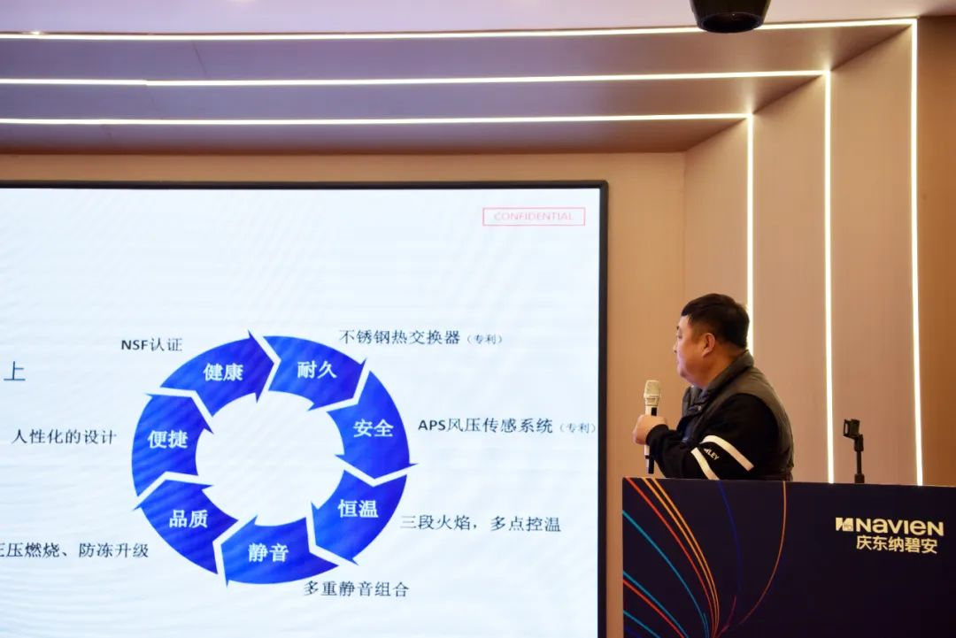 营销运营部刘京经理围绕“新零售3.0战略”展开宣讲。他强调,数字工具正在重构消费者决策路径,庆东纳碧安将依托微信小程序、直播工具与后台数据模型,为门店提供精准流量支撑,提升成交效率。同时,在东北区域典型场景如高端住宅、温泉别墅等项目中,品牌将主推“热水+采暖+智慧控制”的解决方案,打造复合型增长通路。