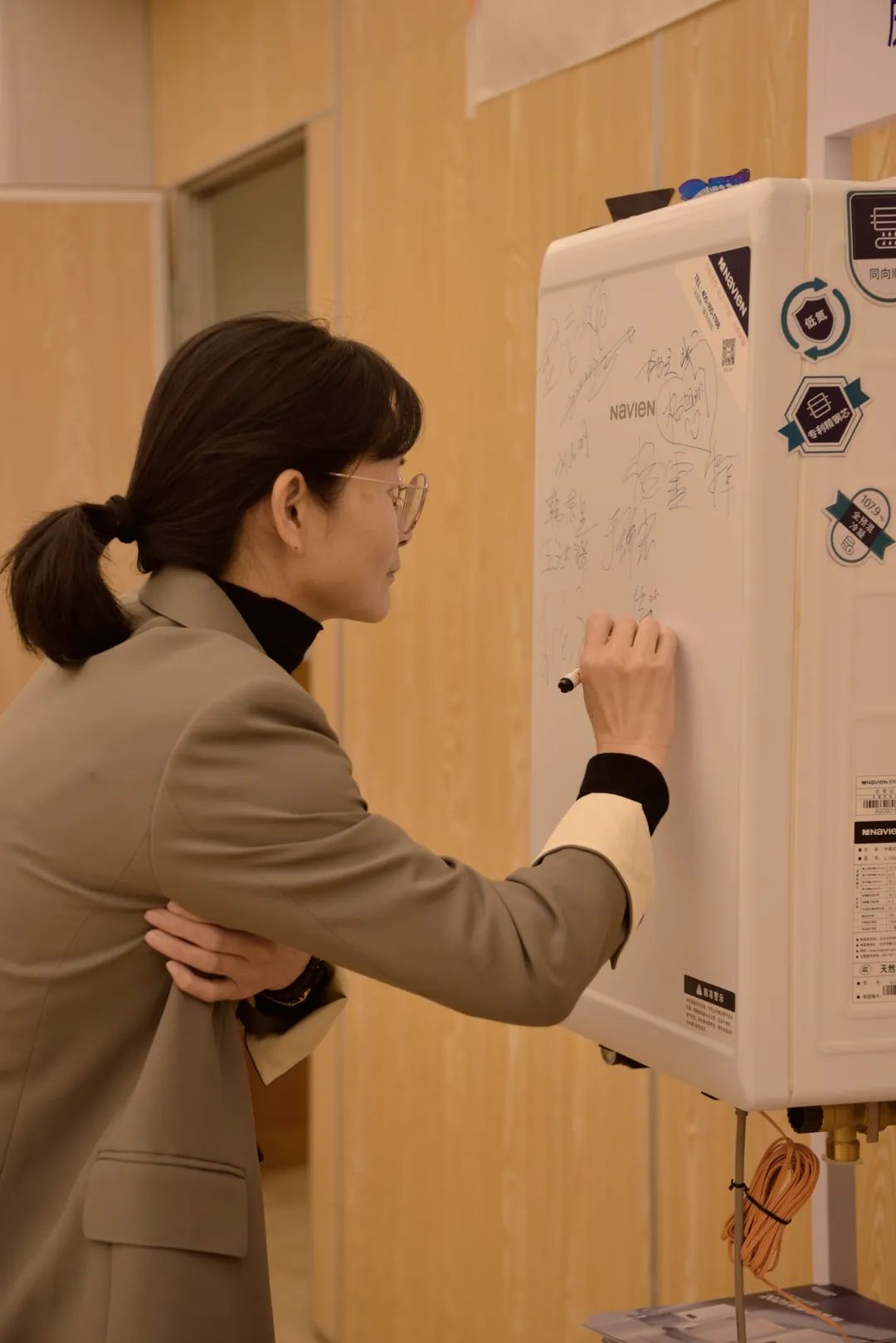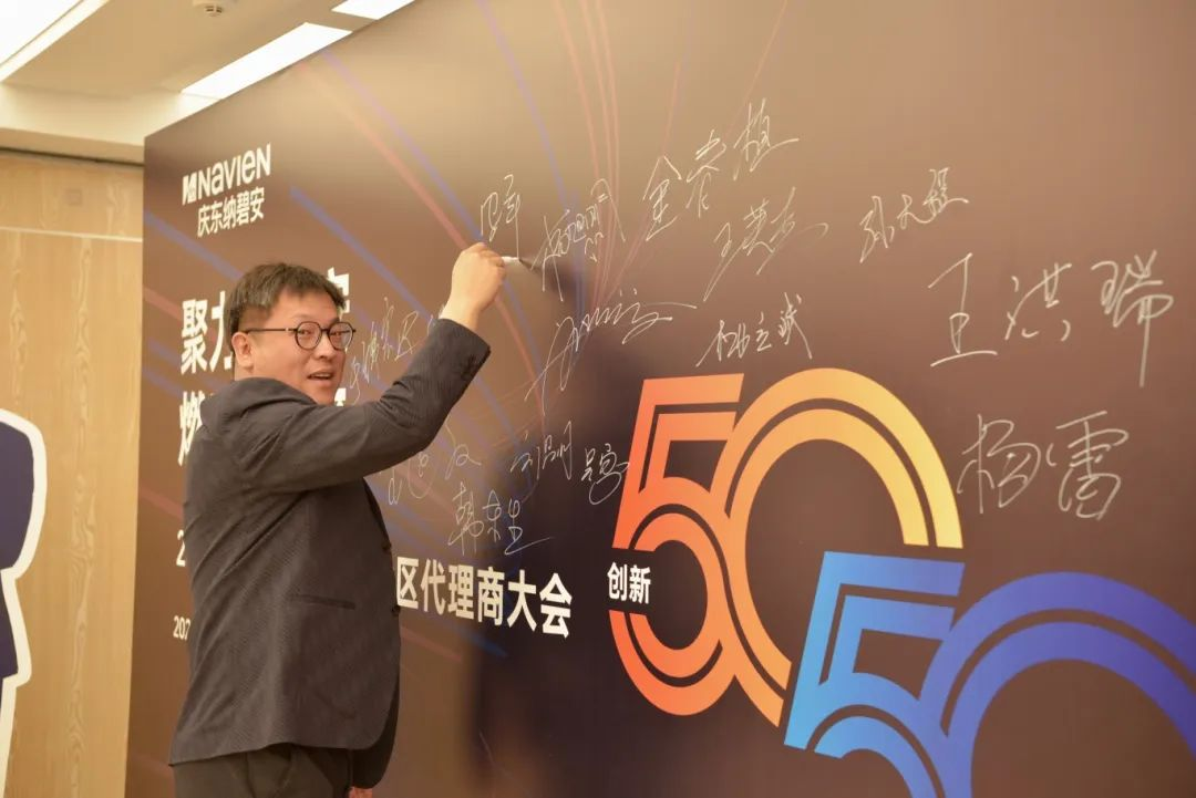 会议伊始,一场极具仪式感的“新品签名仪式”拉开帷幕。与会嘉宾纷纷在庆东纳碧安新品壁挂炉上郑重签名,这不仅是对产品品质的认可,更是区域合作信念的集中表达。