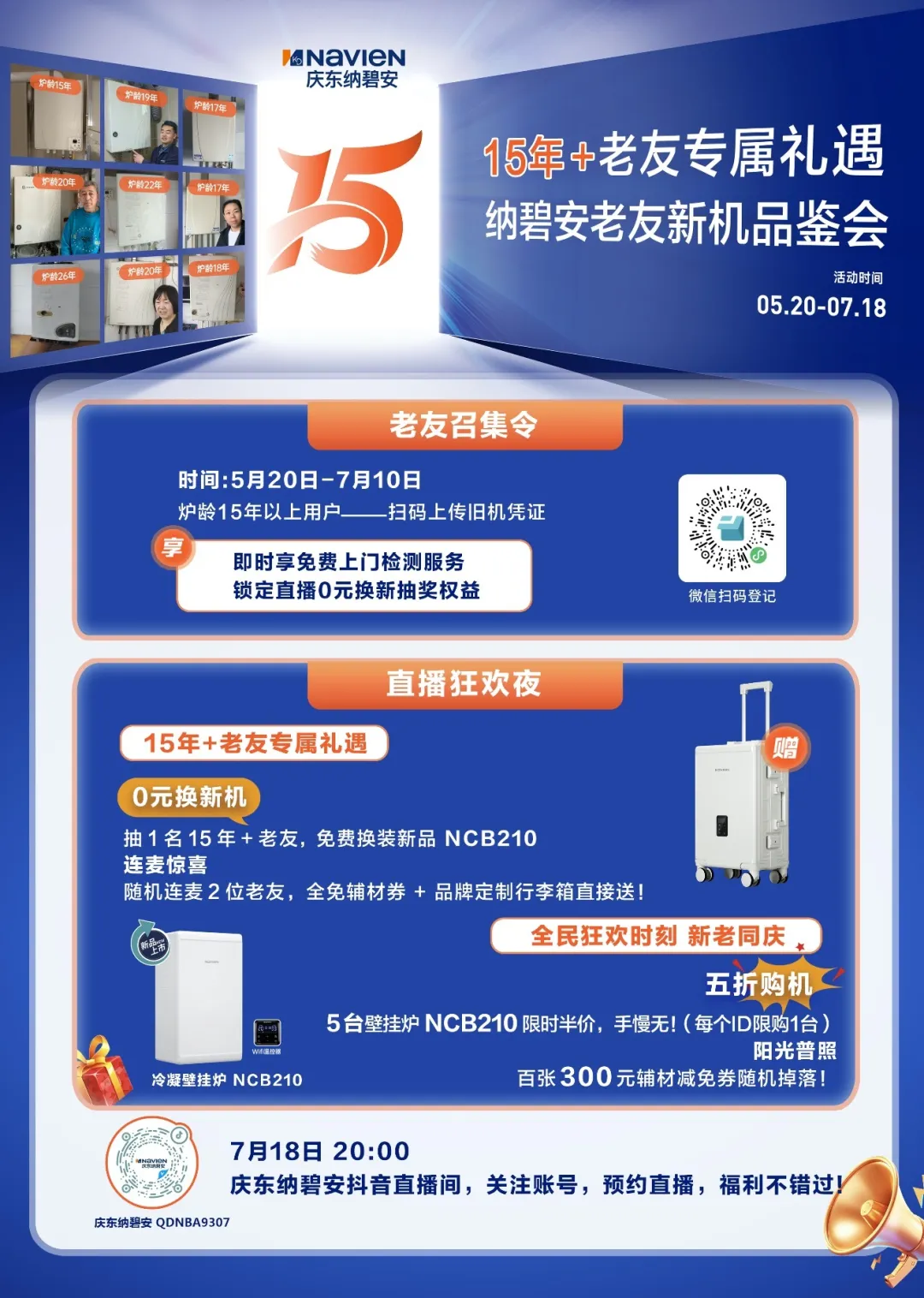 7月18日晚8点,锁定抖音直播间 @庆东纳碧安,抢五折新机、领专属优惠券,错过就要等明年啦!
