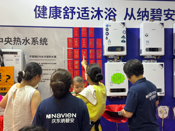 在家装消费热潮不断升温的当下,庆东纳碧安以“全预混冷凝壁挂炉+智慧热水系统”为核心展陈内容,不仅传递了舒适、节能的产品价值,更以高品质的服务与互动体验,为参展观众带来一场“关于温度的体验式提案”。